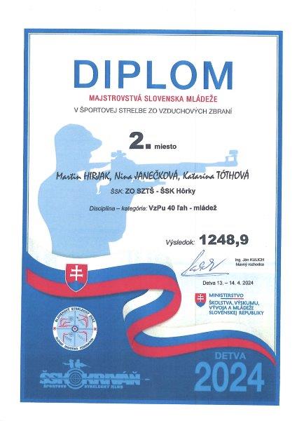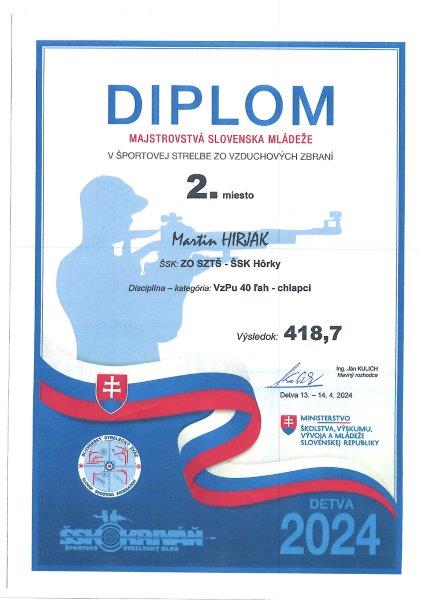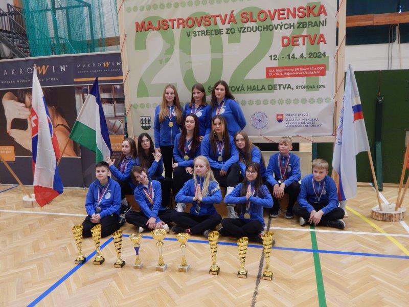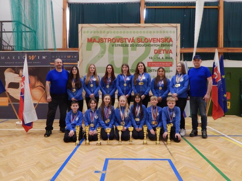 V dňoch 12.4.2024 - 14.4.2024 sa v Detve uskutočnili Majstrovstvá Slovenska v športovej streľbe. Naši strelci pod vedením trénerov Ondreja a Miroslava Grečnárovcov dosiahli opäť výnimočné úspechy. Všetky sú zobrazené v priloženej fotodokumentácií.