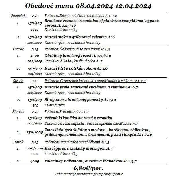 Obedové menu bude zverejňované na stránke obce www.obechorky.sk v časti Organizácie/Reštauračné zariadenia/Obedové menu.