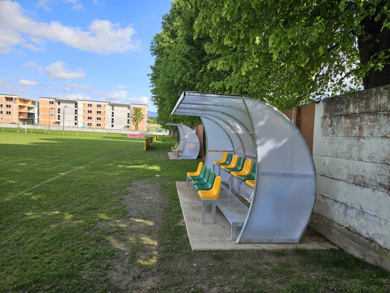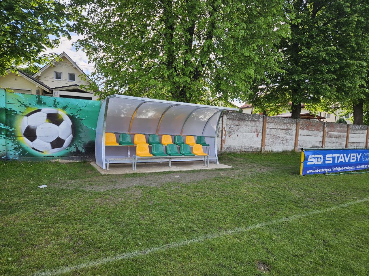 vďaka podpore Slovenského futbalového zväzu - SFZ z programu Eurá z Eura v sume 6 000 EUR sa nám podarilo vybudovať nové hráčske lavičky - striedačky. Pôvodné boli už neestetické, po dobe životnosti. Obec spolufinancovala tento projekt v sume 1 500 EUR - spoluúčasť a náklady spojené s odstránením starých striedačiek a realizovanie betónových podkladov pre nové striedačky.
