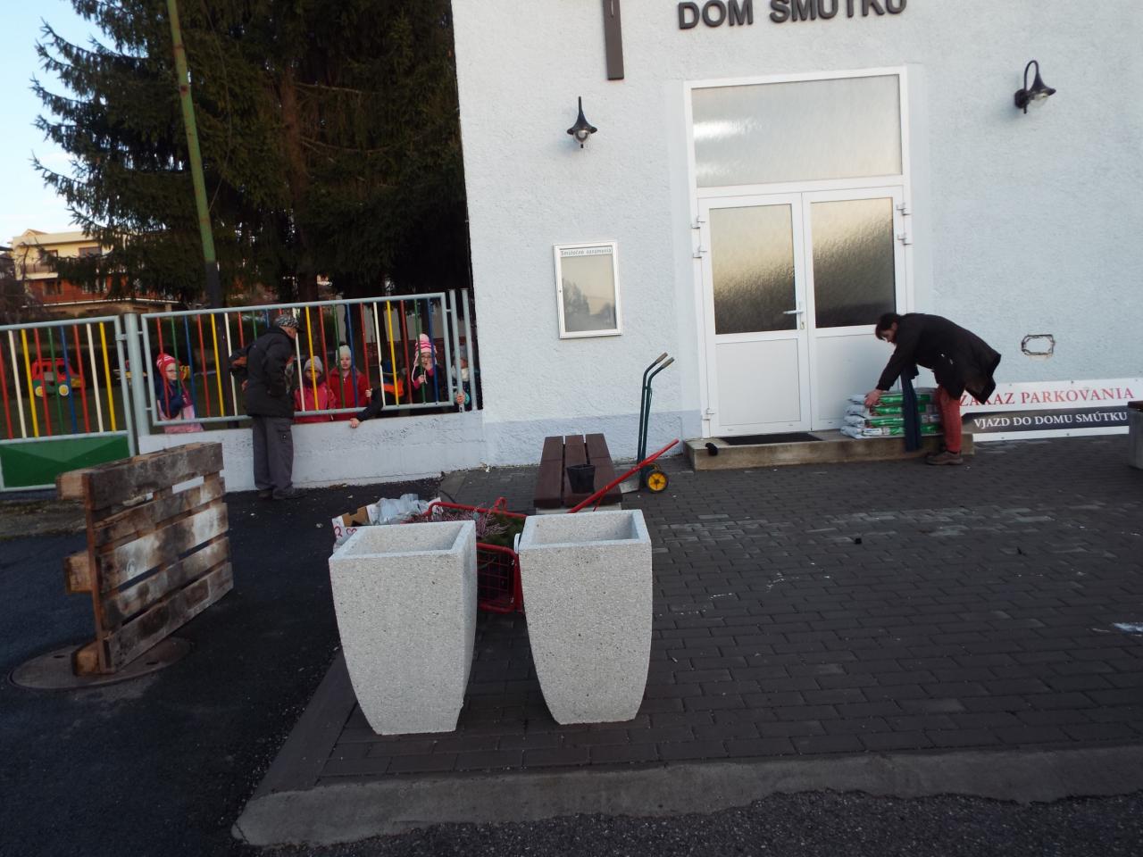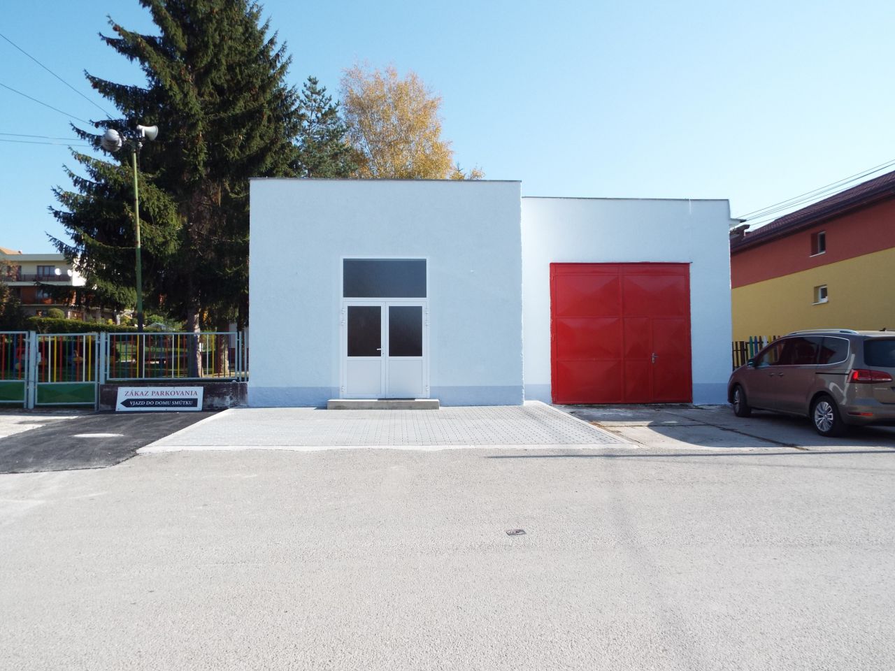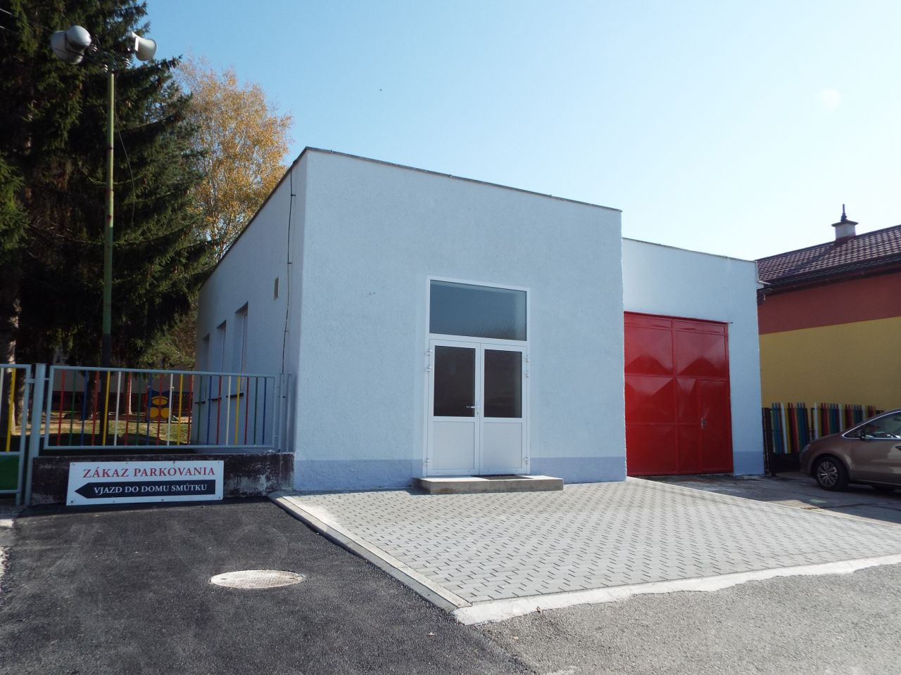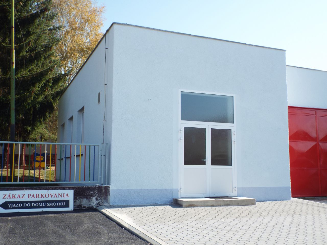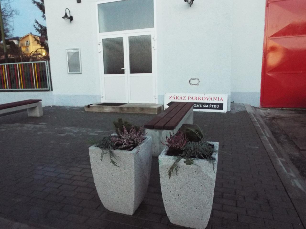 Budova Domu smútku a Hasičskej zbrojnice po oprave fasády 2018. V roku 2019 sme osadili pred domom smútku lavičky a kvetináče s výsadbou. V roku 2020 bola nainštalovaná strieška nad vchodom do Domu smútku.