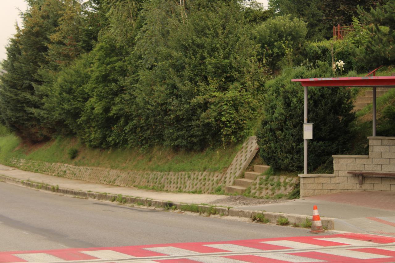 Rekonštrukcia chodníka na Hlavnej ulici, osadenie zábradlia pri školskej zastávke