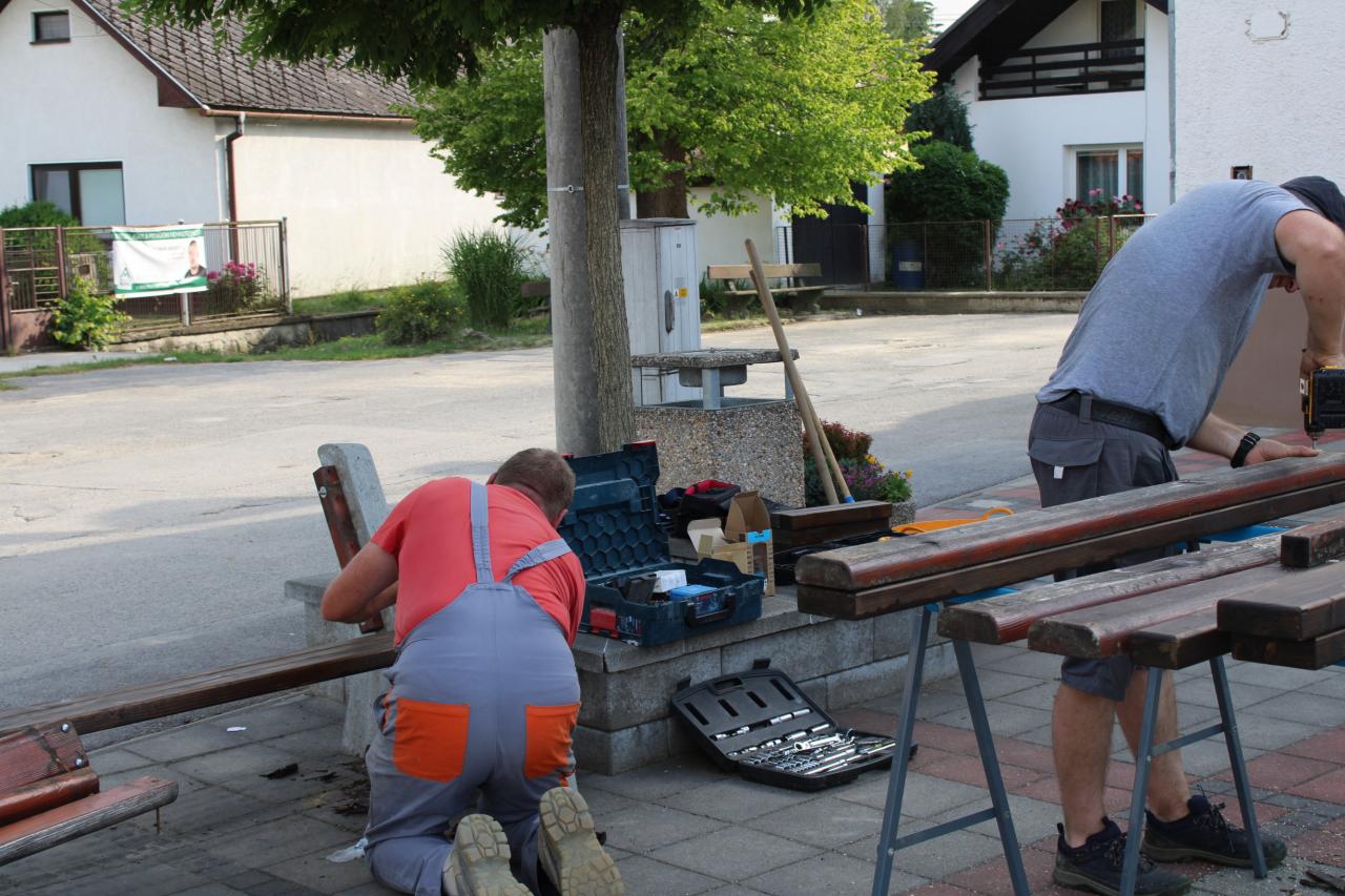 Aj tento rok pokračujeme v rekonštrukcii lavičiek v našej obci. Kompletnou rekonštrukciou prešli lavičky na obecnom námestí.