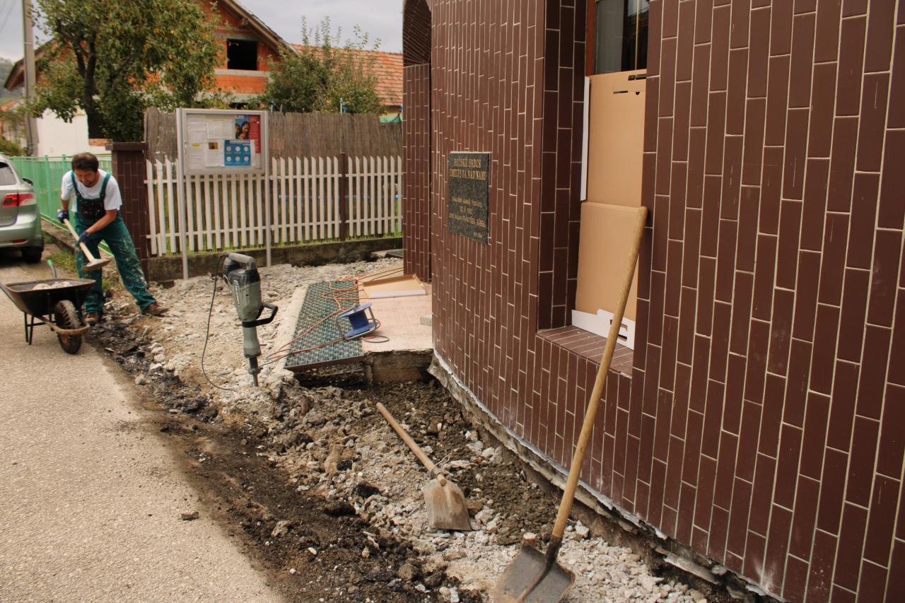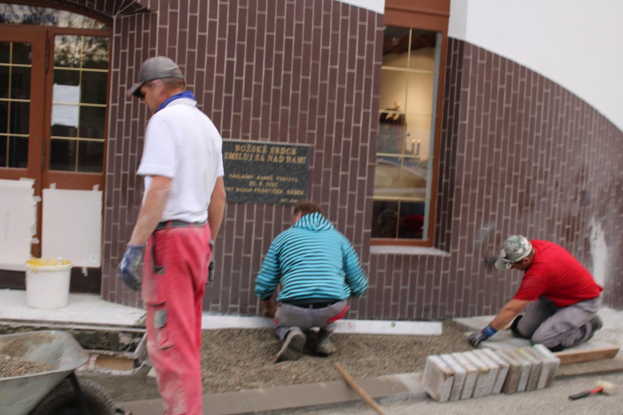 V októbri 2 020 sme sa spolupodieľali na úprave priestoru pred hlavným vchodom do kostola. Prácou pomohli dobrovoľníci, ktorí vysekali betón, pôvodnú dlažbu a uložili novú dlažbu na celý priestor. Dlažbu sponzorsky venoval náš obyvateľ pán Hrnko. Následne sme osadili pred oboma vchodmi lavičky. Boli vymenené drevenné časti zábreadlia.