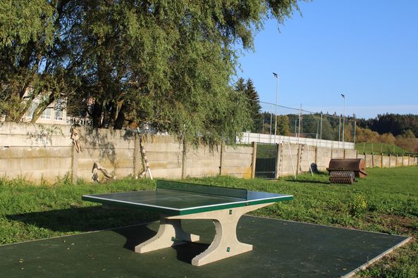 V rámci obnovenej tradície stolnotenisových turnajov v našej obci sme v tomto roku na futbalovom ihrisku osadili celoročný betónový stôl na stolný tenis. Plocha okolo stola je z gumenej podlahy, čo umožní bezproblémové využívanie stola aj v daždivejšom období.