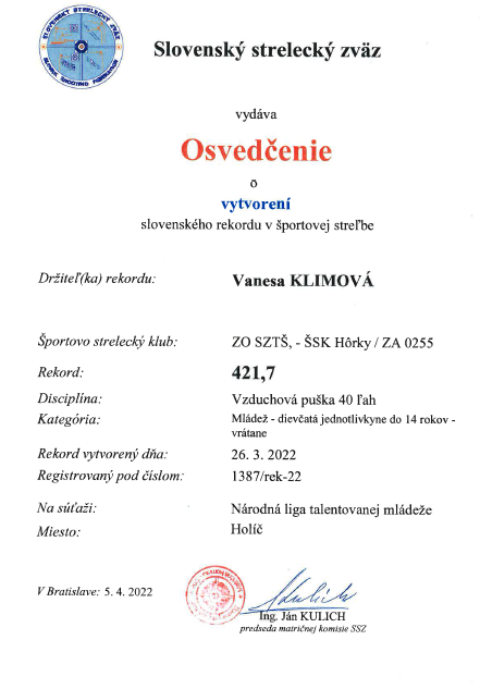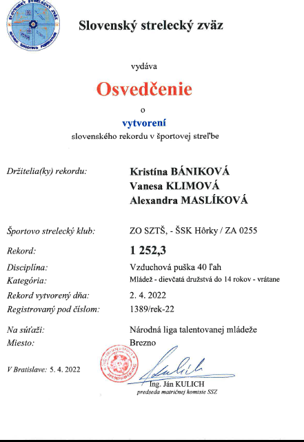 Úspechy našich strelcov Športového streleckého klubu Hôrky