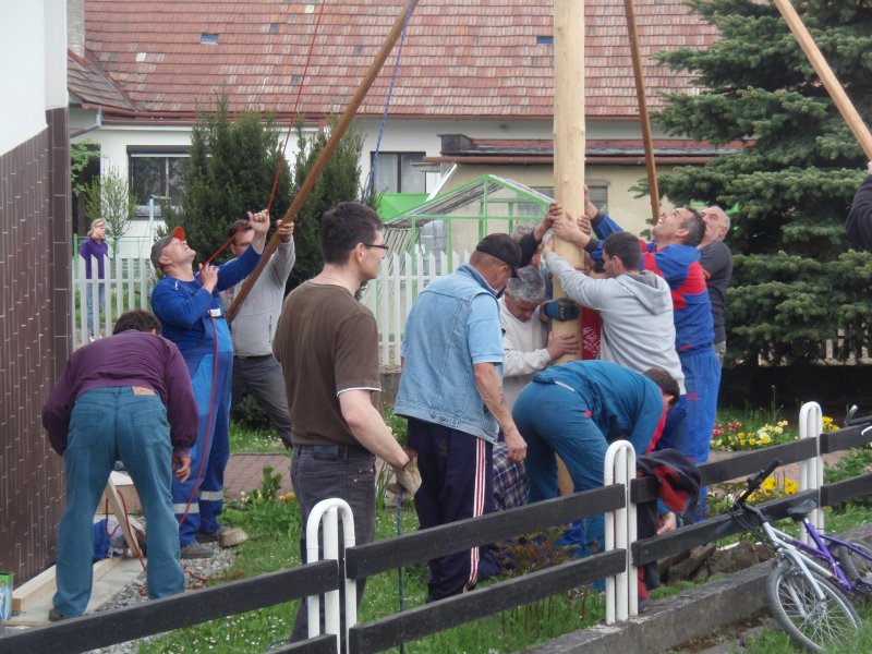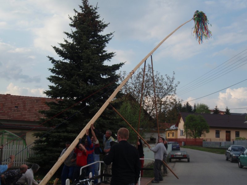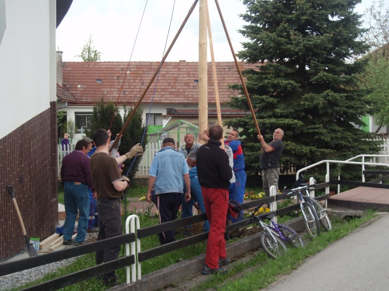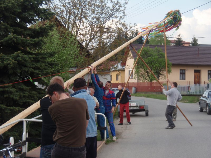 Posledný aprílový deň už tradične v našej obci patrí stavaniu MÁJA. Nebolo tomu inak ani tento rok. Zišli sme sa: deti, mládež, mladí či starí,pri kostole, kde sa stavanie mája konalo. Muži z našej obce osadili MÁJ vyzdobený pestrými farebnými stužkami na pripravené miesto pri kostole.