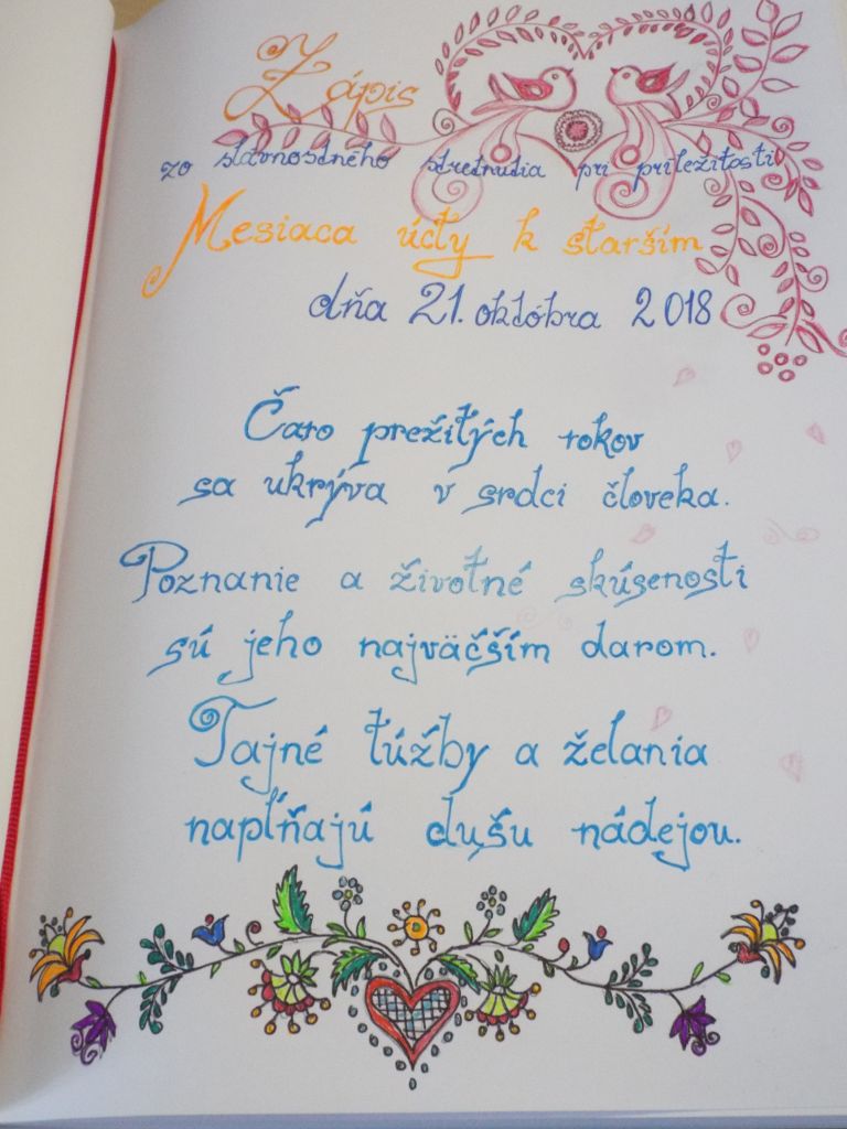 V nedeľu 21. októbra sme privítali našich spoluobčanov vo veku od 62 rokov v kultúrnom dome na spoločenskom posedení pri príležitosti úcty k starším. Pani starostka na úvod všetkých privítala a po príhovore v mene obce popriala tohtoročným jubilantom všetko najlepšie.