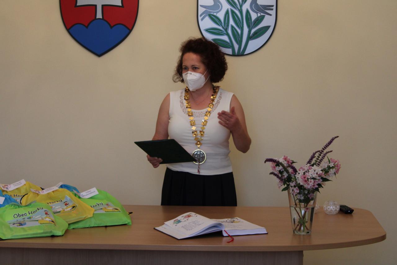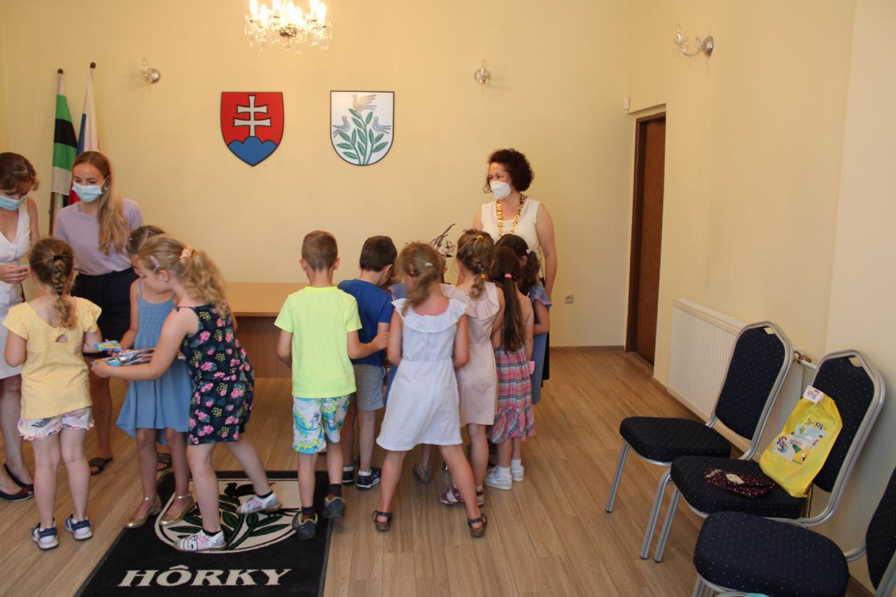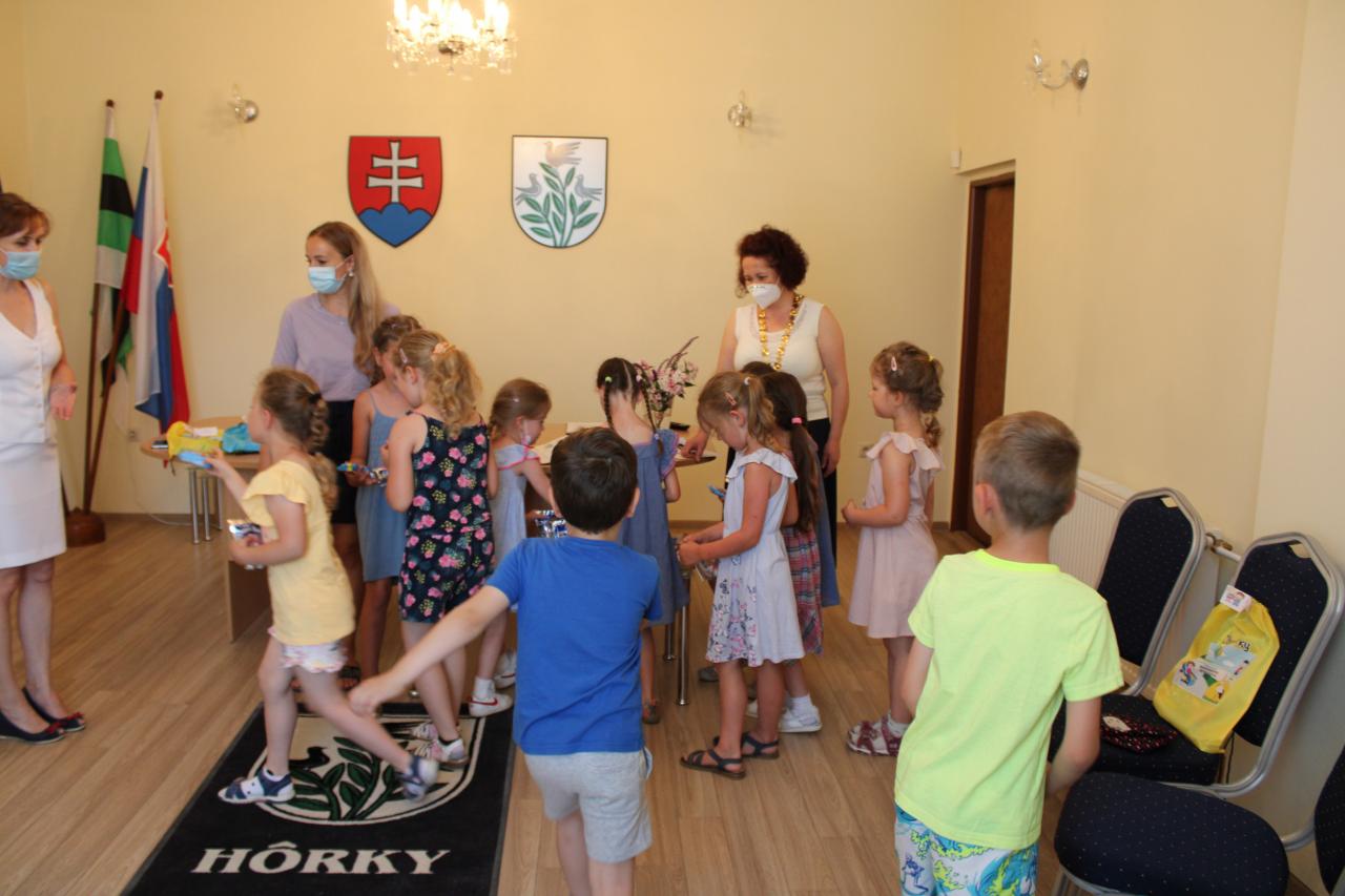 21.06.2021 privítala p.starostka predškolákov v obradnej sieni obce, kde pre nich pripravili slávnostnú rozlúčku v mene obce Hôrky. Popriala im do nového začiatku veľa úspechov, aby do školy chodili s radosťou, dobre sa im v nej darilo a aby dostávali samé jednotky. Každé dieťa dostalo aj darček.