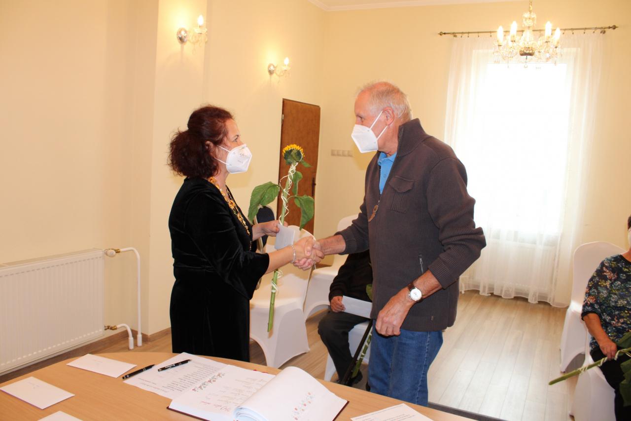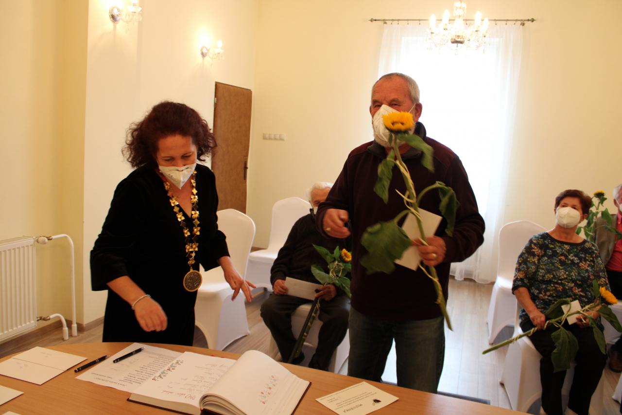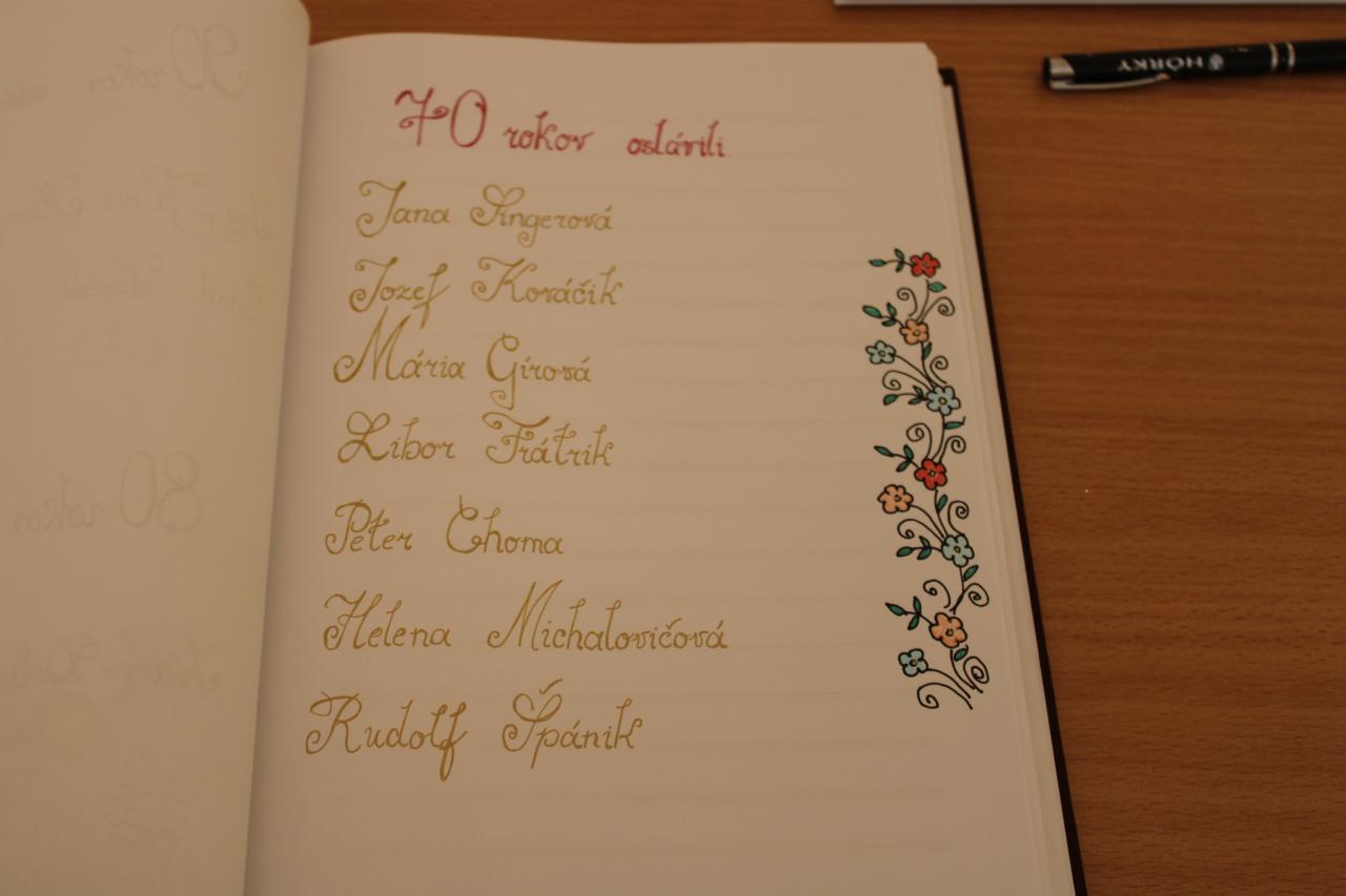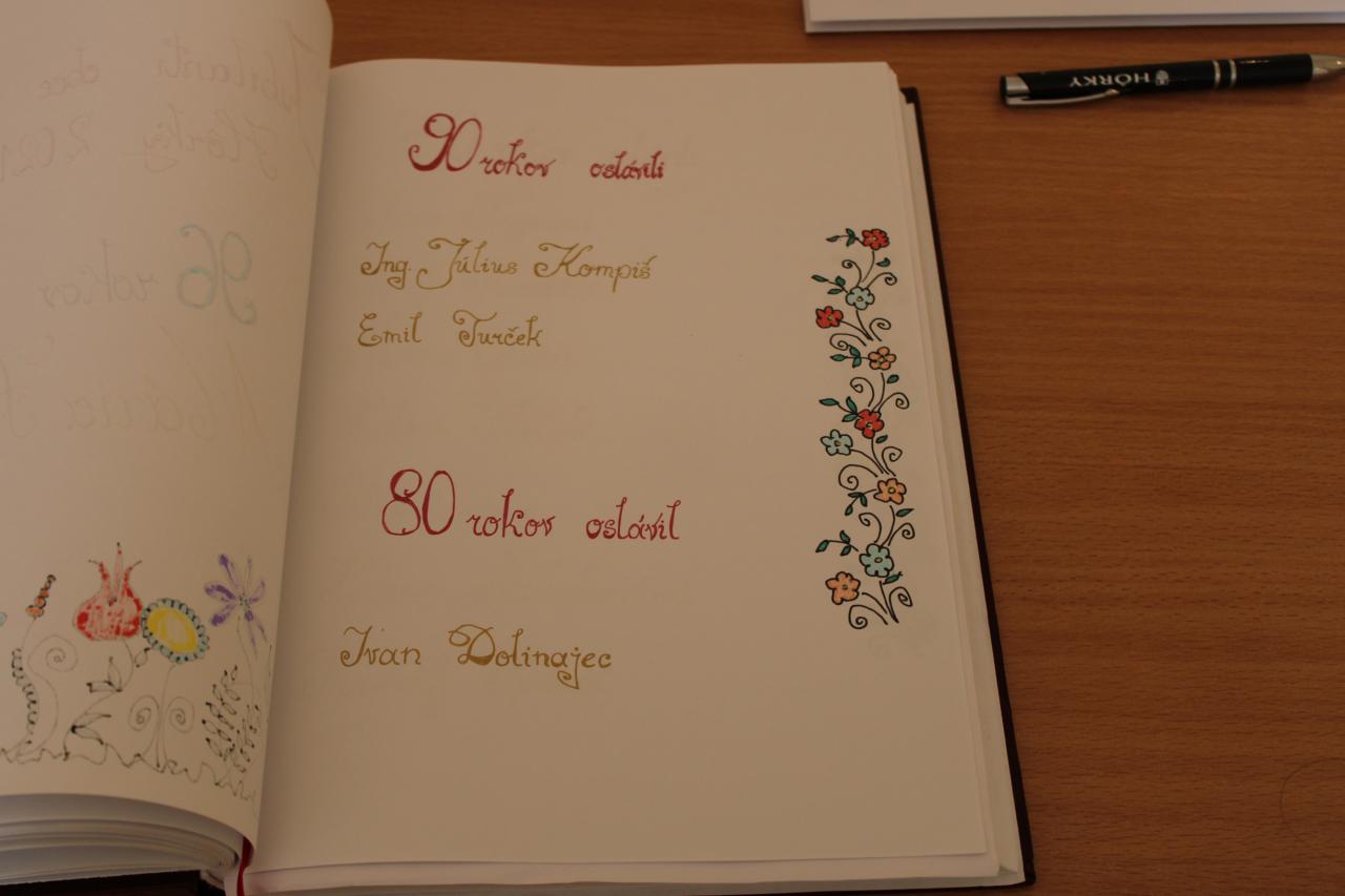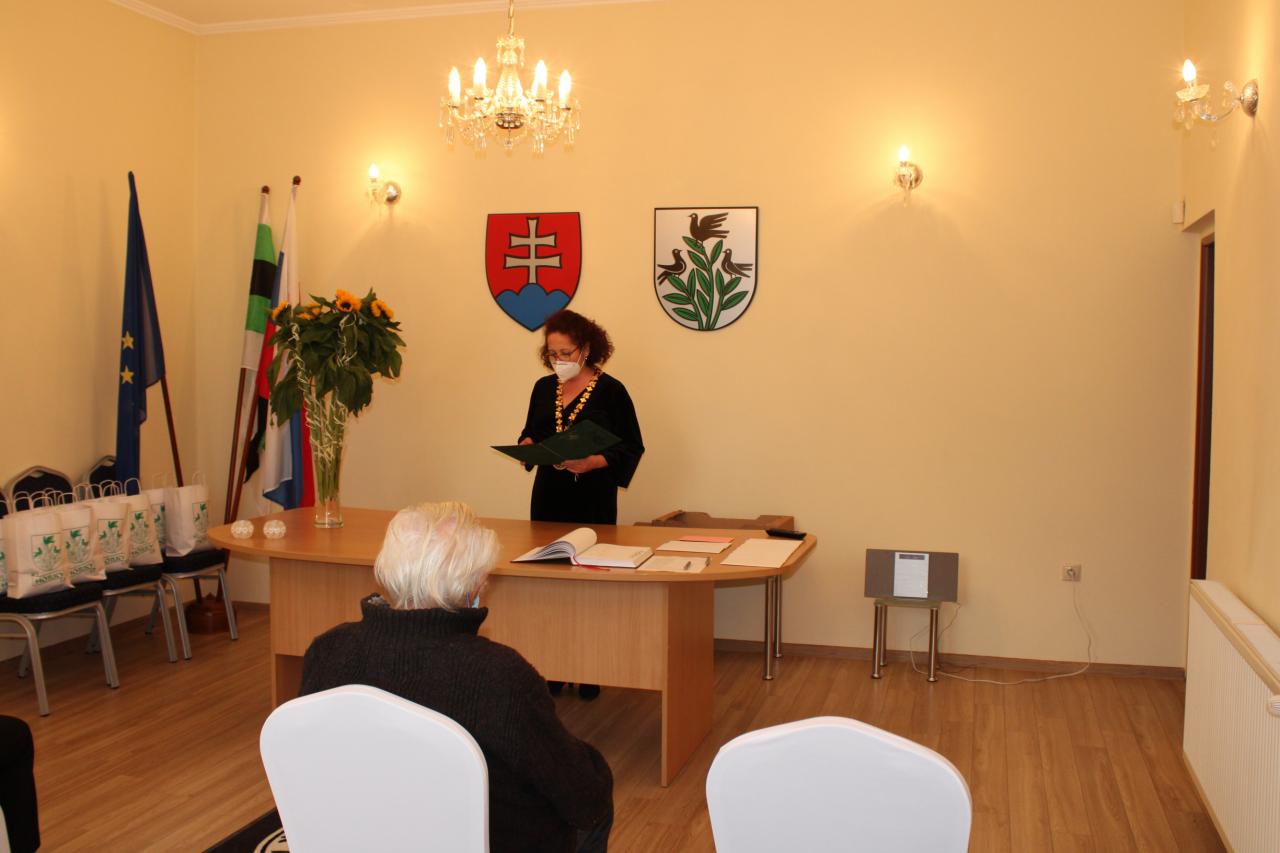V mene svojom a v zastúpení našej obce Vám k Vášmu životnému jubileu želám z celého srdca, aby ste ešte veľa rokov pobudli v zdraví medzi nami všetkými! Nech je váš život naplnený spokojnosťou! Buďte ešte dlhé roky medzi nami šťastní! V pokoji užívajte život v kruhu svojich najbližších. Nech je Vaša jeseň života pokojná a slnečná! Nech sú dni Vášho zrelého veku prepletené vďačnosťou nás všetkých!