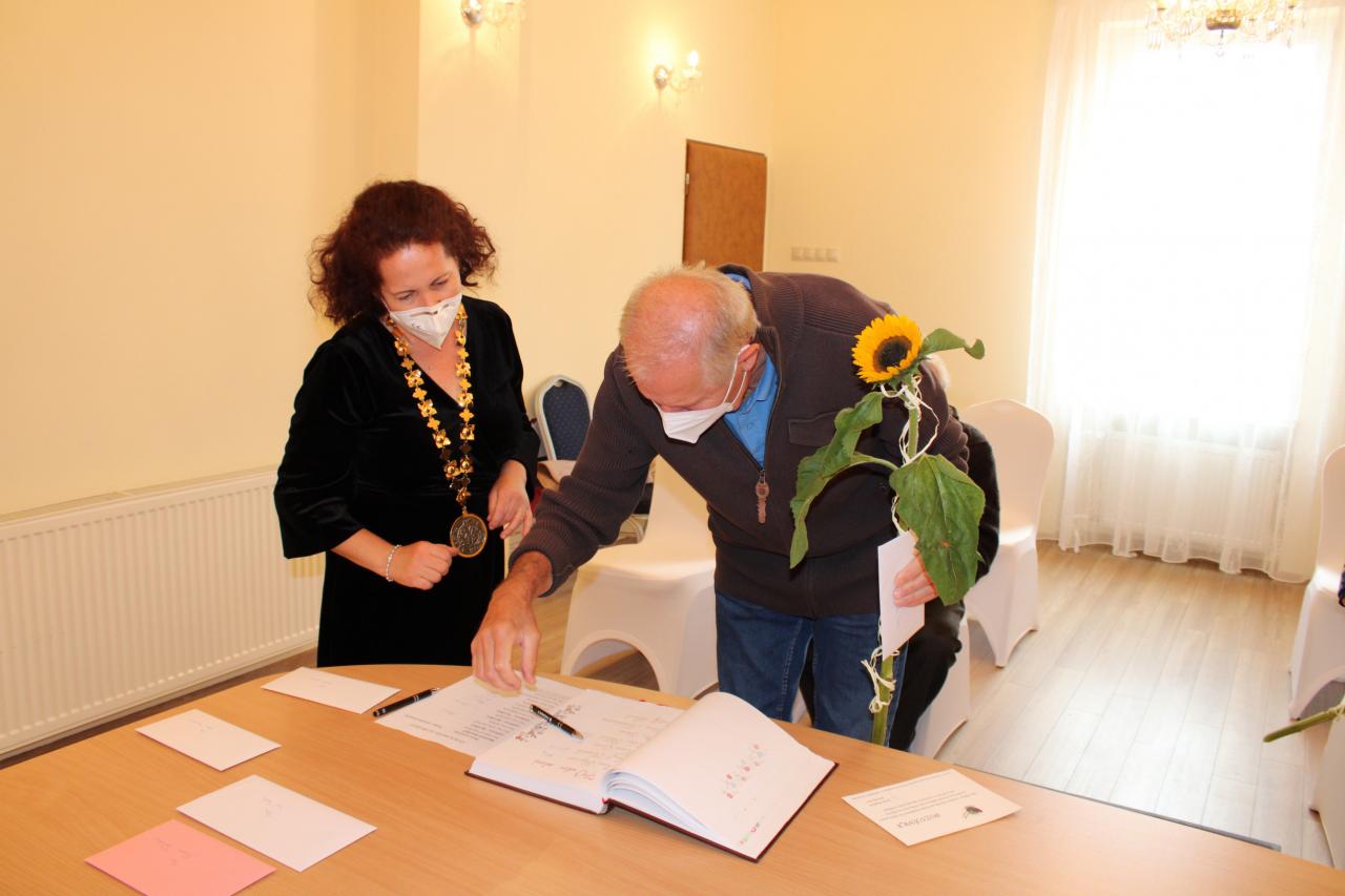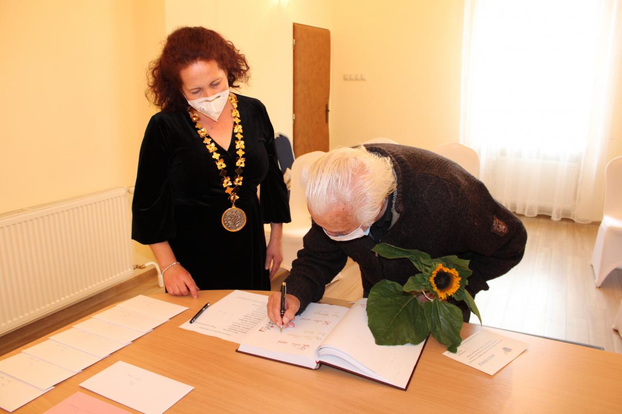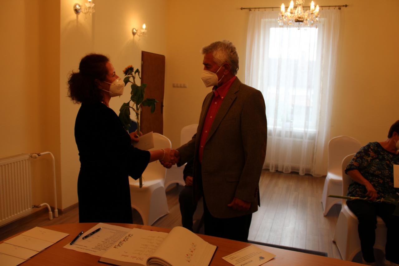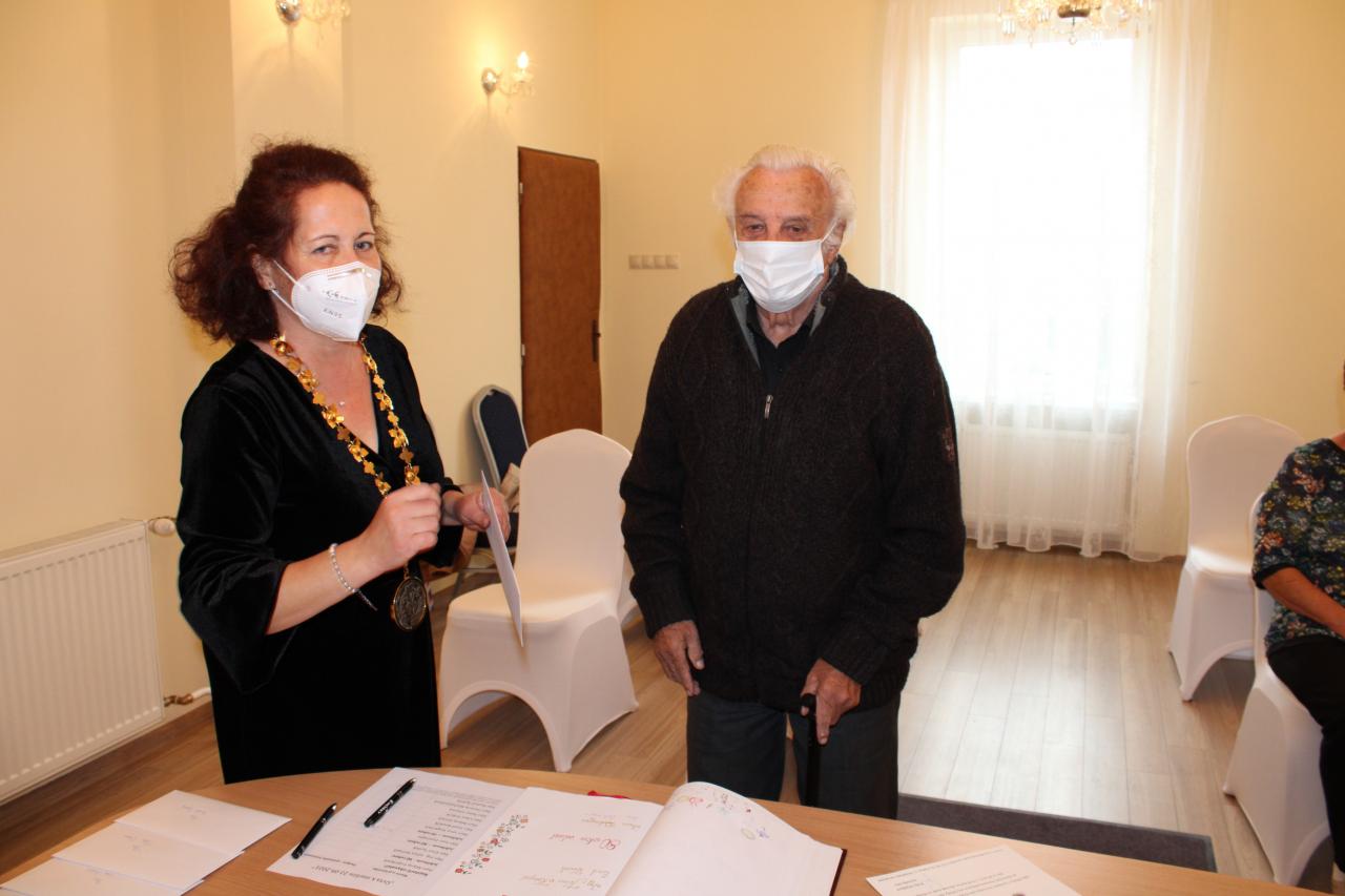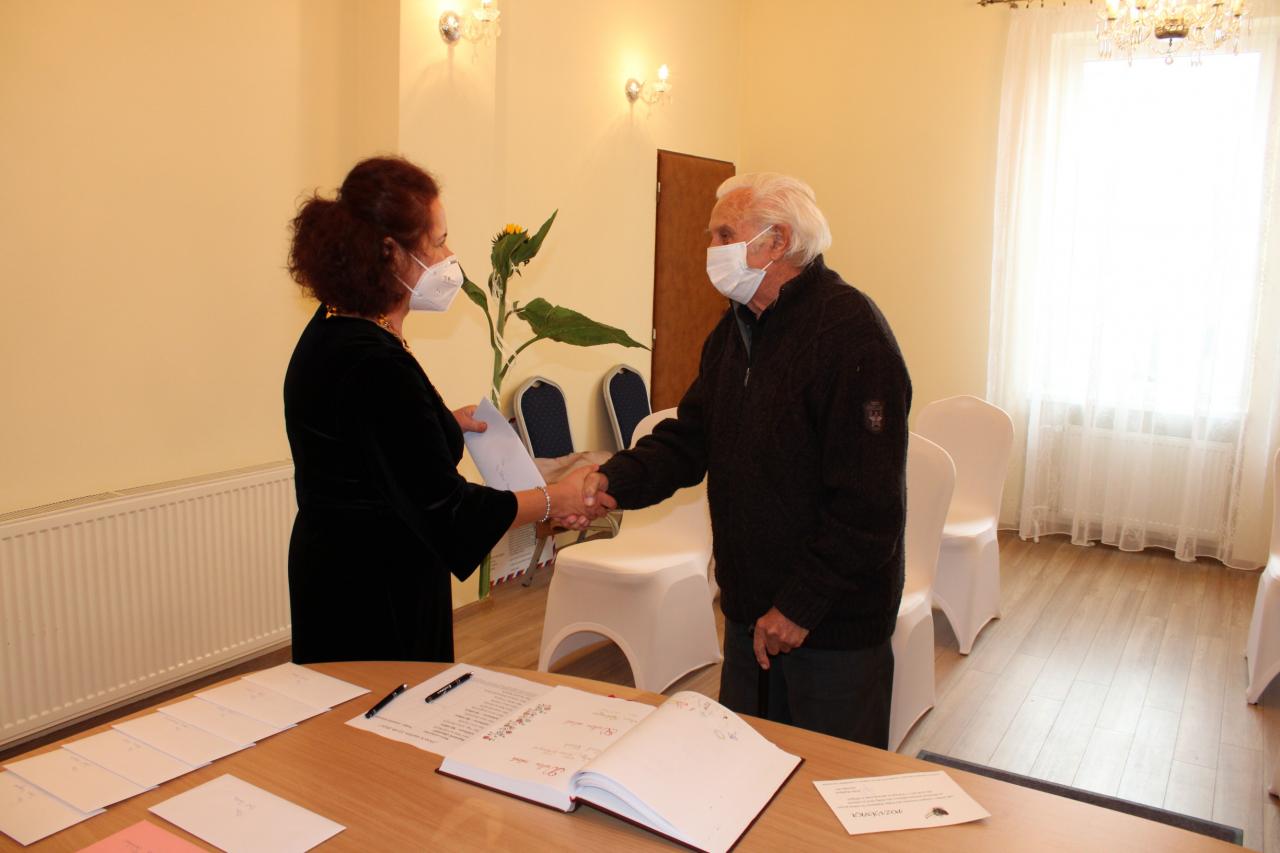 V mene svojom a v zastúpení našej obce Vám k Vášmu životnému jubileu želám z celého srdca, aby ste ešte veľa rokov pobudli v zdraví medzi nami všetkými! Nech je váš život naplnený spokojnosťou! Buďte ešte dlhé roky medzi nami šťastní! V pokoji užívajte život v kruhu svojich najbližších. Nech je Vaša jeseň života pokojná a slnečná! Nech sú dni Vášho zrelého veku prepletené vďačnosťou nás všetkých!