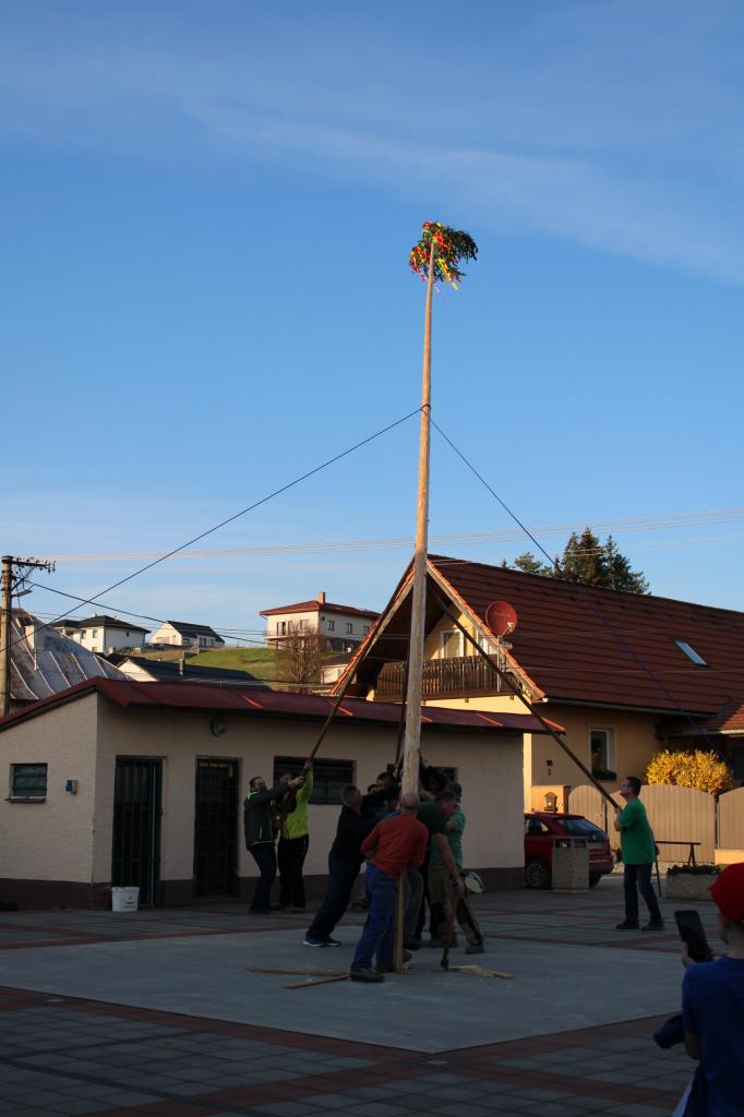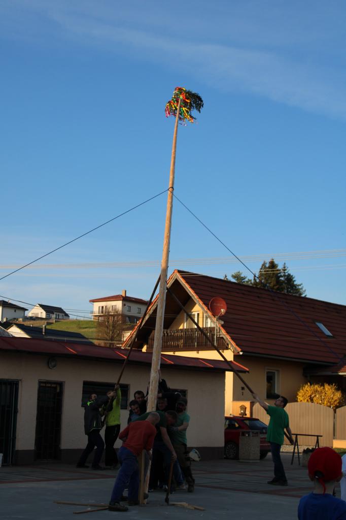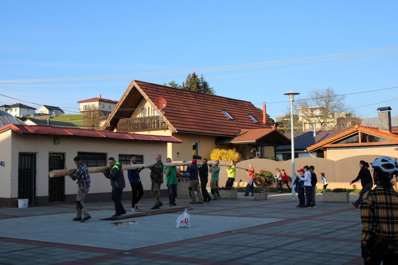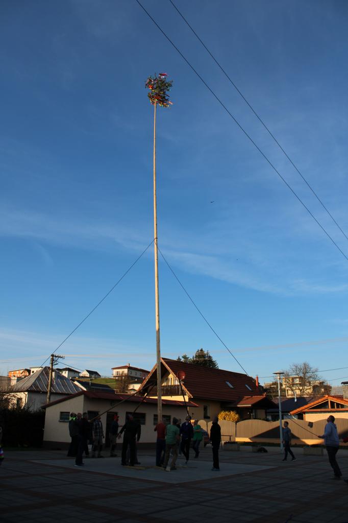 a spoločnými silami mládenci i muži osadili na obecnom námestí 20 metrov vysoký máj, ktorý bude dominantou obce počas celého mesiaca máj.