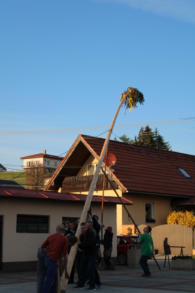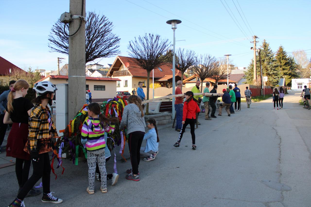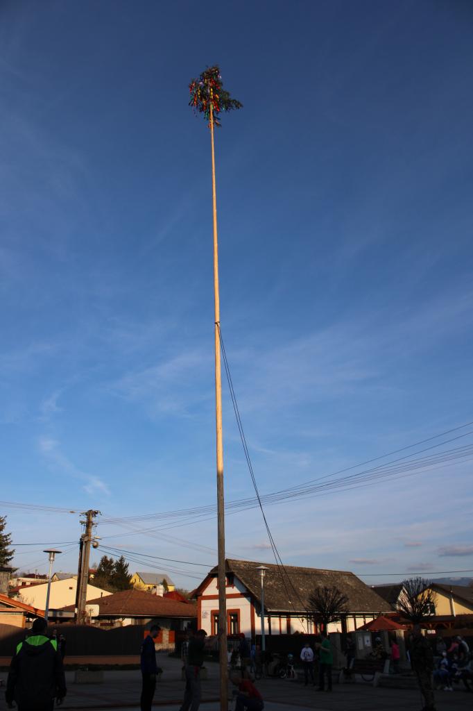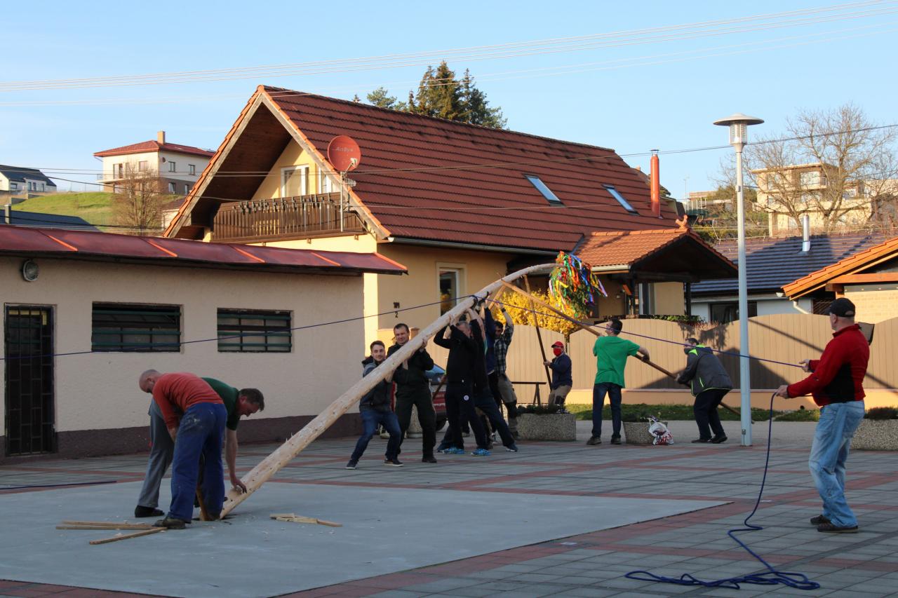 a spoločnými silami mládenci i muži osadili na obecnom námestí 20 metrov vysoký máj, ktorý bude dominantou obce počas celého mesiaca máj.