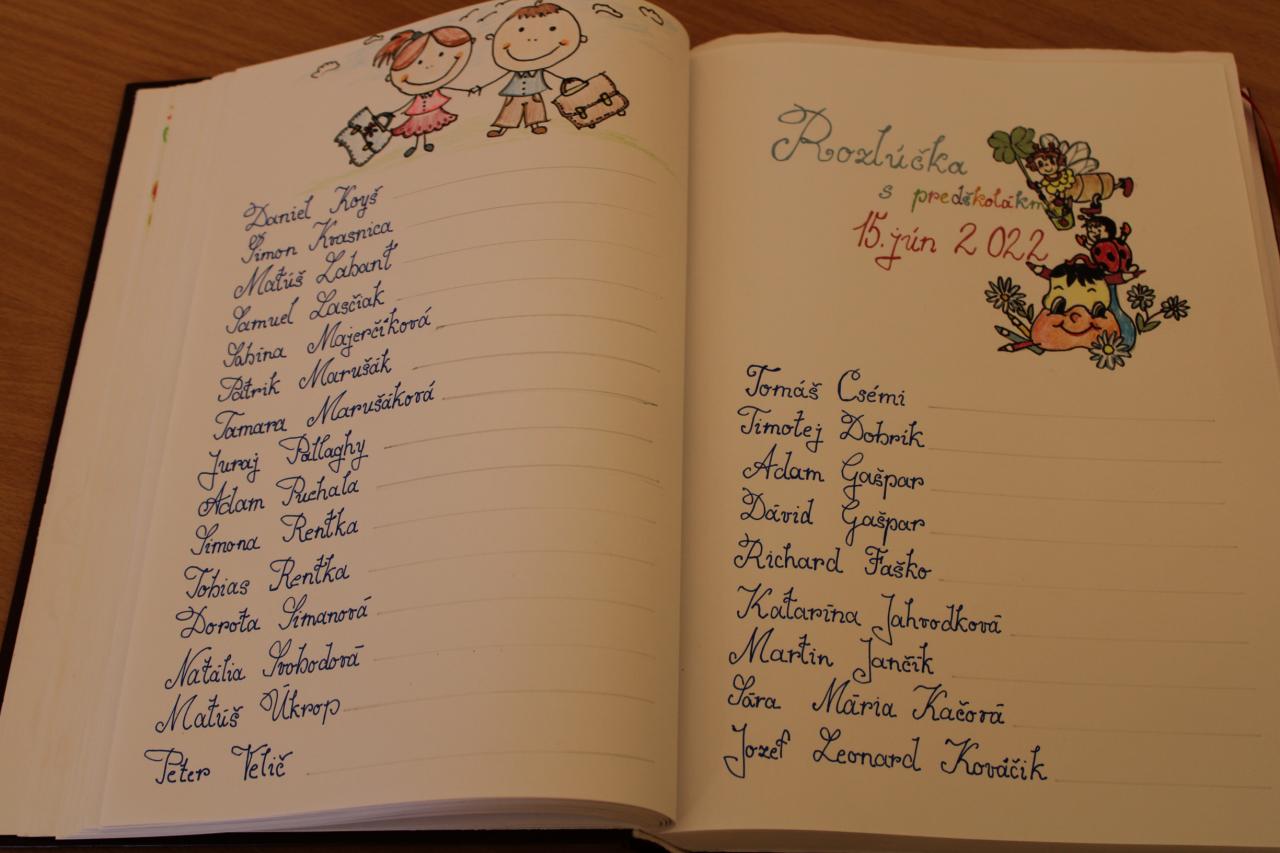 15. júna sme mali na obecnom úrade veľmi milú slávnosť - rozlúčku s našimi predškolákmi. Veľkých predškolákov privítala starostka obce a zaželala budúcim prváčikom veľa úspechov v novej škole.