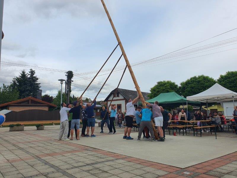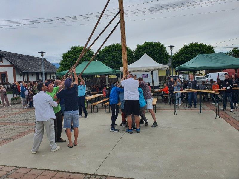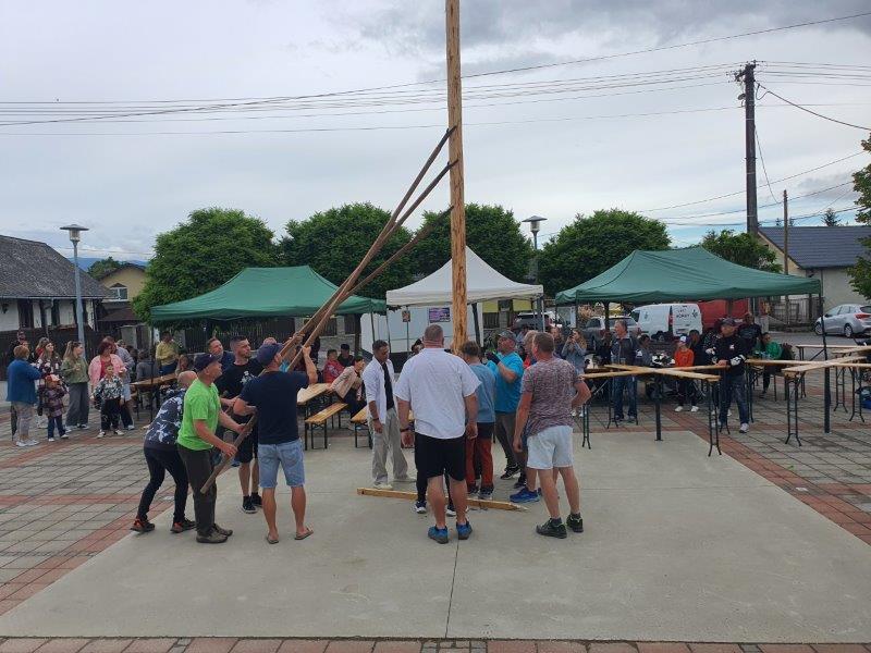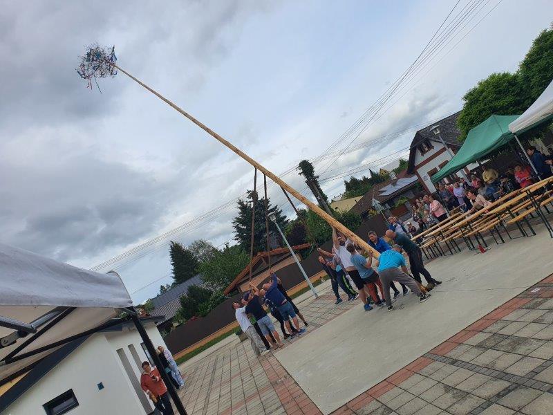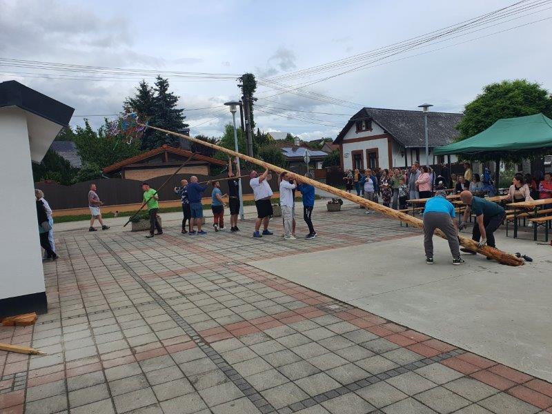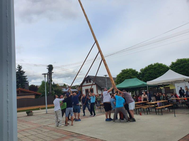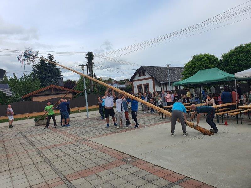 V piatok 24.4.2024 sme na obecnom námestí najskôr zvalili májku, ktorá ho zdobila v mesiaci máj a následne sme sa mohli zabaviť na tanečnej zábave, tentokrát pre nepriaznivé počasie nie v areáli "Kolečko" ako bolo pôvodne plánované, ale na obecnom námestí. Tu sme mohli prvýkrát "otestovať" zrekonštruovaný predajný stánok a nové verejné WC.