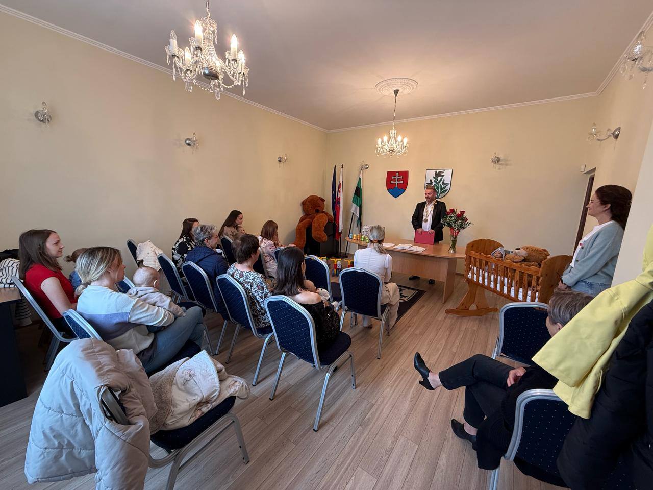 V piatok 23.mája 2025 sa v našej obci konala slávnosť, na ktorej bolo privítaných spolu 8 detí, z toho 7 chlapcov a 1 dievčatko narodených za posledný rok od 1.5.2024. Počas tejto slávnosti sa zhromaždila rodina a priatelia, aby spoločne oslávili túto jedinečnú chvíľu. Deti dostali od obce malý darček, čo pridalo na výnimočnosti celej udalosti. Rodičia sa tiež zapísali do pamätnej knihy, čím zanechali trvalú stopu tohto významného okamihu. Pre mňa ako starostu bola dnešná slávnosť tiež výnimočná, pretože som privítal medzi novými občiankami môjho syna Dušanka